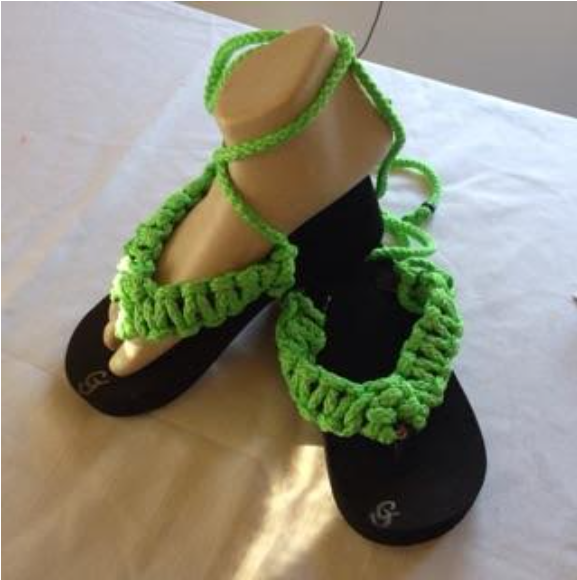 Bold, playful, and handcrafted with comfort in mind, these child-sized wrap sandals feature a 1½-inch black heel paired with vibrant lime green cord detailing. Lightweight and easy to wear, each sandal includes soft macramé-style wrapping that provides a secure and stylish fit.