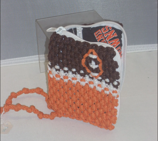 Carry your Cleveland football pride with this handcrafted macramé wallet designed in classic team colors! Compact, lightweight, and full of spirited personality, this piece is perfect for game days, tailgates, or everyday errands.